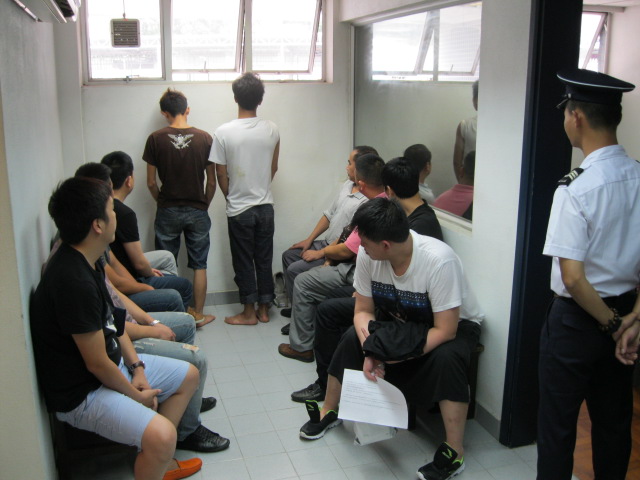 於二零一三年六月五日晚上约十一时三十五分,海关关员在澳门西湾湖景大马路(圣地牙哥酒店)对开岸边执勤时,在上述地点查获两男一女非法入境者正在等待船只企图非法离境返回内地,同一时间发现一艘机动木舢舨靠岸并成功截获刚登岸的六名男性非法入境者,而两名负责驾驶舢舨的中国藉男子,即场被捕,最後一干人等被交到澳门海关总部处理。经初步调查後,证实九名非法入境者年龄由27-46岁,来澳目的为旅游及赌博。由於该两名驾船男子涉嫌作出第6/2004号法律第十四条(协助)所指之犯罪行为;因此,对该两名男子提出起诉,并将案件移交检察院处理。