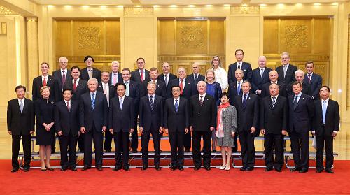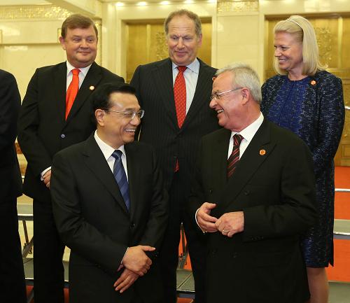 6月5日,国务院总理李克强在北京人民大会堂同出席2013财富全球论坛和出席全球首席执行官委员会的企业家代表会见并座谈。 新华社记者 庞兴雷 摄