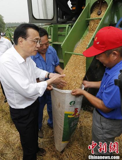 在裴堡东村,他走进田间仔细察看小麦长势、并登上联合收割机向司机了解麦收情况。他们说,今年小麦长势普遍很好,颗粒饱满,每亩麦穗量也有一定增加。李克强说,小麦是夏粮的主要品种、是填饱肚子的口粮,小麦增收不仅会使农民增收,也会使天下安心。