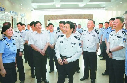 6月16日,国务委员、公安部部长郭声琨深入合肥市基层派出所、网安支队、高科技企业调研,与一线干警和科研人员面对面交流,听取他们对公安工作的意见建议。他强调,各级公安机关要积极适应经济社会发展的新形势,主动回应人民群众的新期待,大力加强动态化信息化条件下的基层基础工作,努力提升打击犯罪服务群众的能力和水平。中央政法委秘书长、国务院副秘书长汪永清,公安部常务副部长杨焕宁、副部长黄明随行调研。省委常委、政法委书记、公安厅党委书记徐立全,省委常委、合肥市委书记吴存荣,副省长方春明陪同调研。
