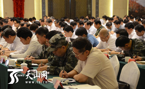 国务委员、公安部部长郭声琨,全国政协副主席、国家民委主任王正伟,中央政法委秘书长、国务院副秘书长汪永清,武警部队司令员王建平,中国人民解放军副总参谋长孙建国以及中央有关部门负责同志,自治区领导努尔·白克力、努尔兰·阿不都满金、车俊及自治区党委、人大、政府、政协、新疆军区、生产建设兵团领导,自治区高级人民法院、自治区检察院、武警新疆总队,自治区党委各部委,自治区各委办厅局、人民团体、大专院校、自治区大中型企业、中央驻疆单位党政负责同志参加会议。
