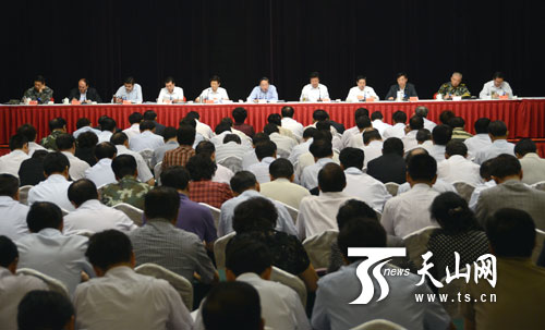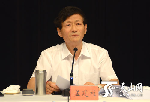 中共中央政治局委员、中央政法委书记孟建柱在会上对新疆反恐维稳工作作了具体部署。