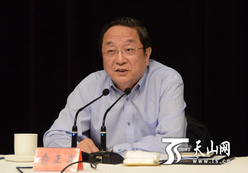 俞正声在会上表示,中共中央政治局常委会会议认为,党中央历来高度重视新疆工作。近年来,新疆经济发展形势是好的,但境内外民族分裂势力依然在加紧活动,影响新疆社会稳定的深层次问题尚未得到根本解决,近期连续发生少数犯罪分子策划实施的暴力恐怖袭击案件,性质恶劣、后果严重,给新疆各族群众生命财产安全造成严重损失。这充分表明暴力恐怖活动是影响新疆民族团结、社会稳定的重大现实危害。新疆各族干部群众一定要把思想认识统一到中央对形势的分析判断上来,把行动统一到中央的决策部署上来,高举维护国家统一、维护民族团结、维护各族群众根本利益的旗帜,始终保持清醒头脑,切实增强忧患意识,下好先手棋、打好主动仗,坚决反对和打击暴力恐怖势力、暴力恐怖活动,坚决维护人民生命财产安全,坚决维护民族团结、社会稳定,为新疆发展继续创造良好环境。