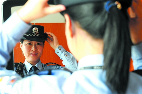 早上8点到岗,换好警服、戴上“九小件”、调好对讲机和执法仪,然后在警容镜前整理得整整齐齐后上巡逻车,娄门派出所女民警李夏带着一名警辅开始了一天的巡逻和接处警。在江苏省苏州市公安局姑苏分局,李夏是唯一一名在路面接处警和上车巡逻的女民警。