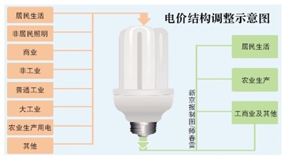 新京报讯 (记者钟晶晶)发改委昨日披露,近日已下发通知决定逐步调整我国销售电价分类结构,将现有的主要依据行业分类的8类销售电价逐步并为农业生产、工商业及其他用电价格3个用电类别,合并后会相应扩大农业用电范围。发改委称此举可减轻学校、社会福利、农林牧渔业生产单位电费支出每年约30亿元。
