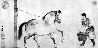 赵孟頫(公元1254—1322年),元代著名画家,是中国历史上少有的艺术全才,除绘画、书法外,他还通晓音律、精通文学。在绘画理论上,他提出著名的“复古”说,主张“画贵有古意”,厌弃那些“用笔纤细,敷色浓艳”的东西,希望从魏晋以来的古画中,吸取传统精神,并细心体察自然,参以己法,大胆创新,创作出具有时代风貌和独特风格的作品。鞍马画是赵孟頫绘画创作的题材之一,样式较多,有古意,有创新,有工笔,也有白描,是其绘画成就的一个重要方面。