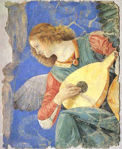 《奏乐天使》只是他壁画中一个局部人物形象,从中可见他写实的功力。
