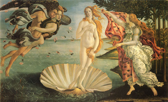波提切利少年时代就酷爱绘画,开始时当金银艺匠学徒,因为有绘画天资,15岁时被做皮革匠的父亲送到画家菲利浦·利皮的画室学画。利皮带着波提切利一同描绘现实生活中的人,并借鉴古希腊艺术中的理想,所以他们创作的圣母子和神话人物都具有世俗的情态:和蔼可亲、动作轻盈、身着绢纱、临风飘逸。后来波提切利又转从委罗基奥门下,与比他小7岁的达·芬奇同窗共学。27岁的波提切利决定自立门户,独立开设工作室接受社会订件。由于他曾师从利皮,因此也受美第奇喜爱和赏识,逐渐成为美第奇宫廷画家中的领袖。