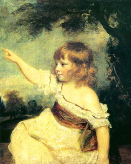 雷诺兹在晚年失明前画了这幅儿童肖像,构图很生动,取一个自然的手势,这一生活形象有助于表现儿童的活泼性格。在这幅画中画家用笔更为潇洒粗犷,以写意的笔触、大色块塑造形象,使肖像更有绘画性,也具有更高的艺术性。