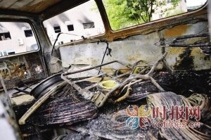 事发现场面包车内被烧得一片狼藉 (1/3)